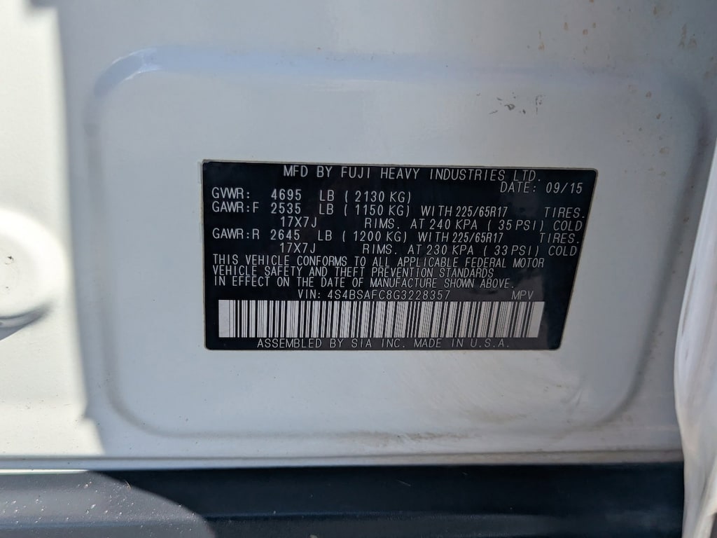 CARGO NET (REAR) -inc: Part number F551SAL000, CARGO NET (REAR SEAT BACK) -inc: Part number F551SAL010, BUMPER COVER (REAR) -inc: Part number E771SAL000, ALL WEATHER FLOOR MATS -inc: Part number J501SAL400, Wireless Phone Connectivity, Window Grid Antenna, Wheels: 17" x 7.0" Aluminum Alloy w/Silver Finish -inc: black aluminum alloy center cap w/Subaru 6 star logo, Vehicle Information Display -inc: average vehicle speed, fuel economy: current and average fuel economy a and b and distance to empty, fuel economy: evaluation information, journey travel time and distance, rear cross traffic alert, rear-vision camera, self check and vehicle maintenance reminder, user configurable triple meter, vehicle activation status, vdc operation, vehicle drivetrain monitoring, Variable Intermittent Wipers w/Heated Wiper Park, Valet Function.
