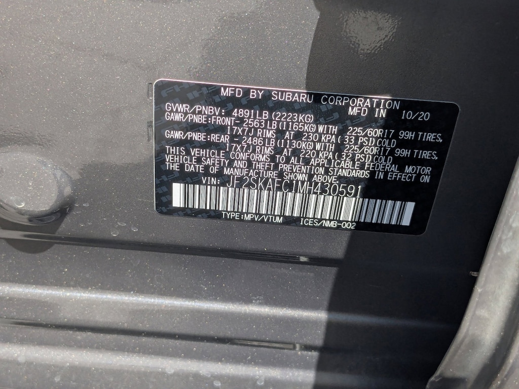 Wireless Phone Connectivity, Wheels: 17" x 7.0J Black Machine Finish Alloy -inc: Aluminum, Variable Intermittent Wipers w/Heated Wiper Park, Valet Function, Urethane Gear Shifter Material, Trip Computer, Transmission: Lineartronic CVT Automatic -inc: low shift mode and X-MODE: single mode system, Transmission w/Driver Selectable Mode, Towing Equipment -inc: Trailer Sway Control, Tires: 225/60R17 99H All-Season.