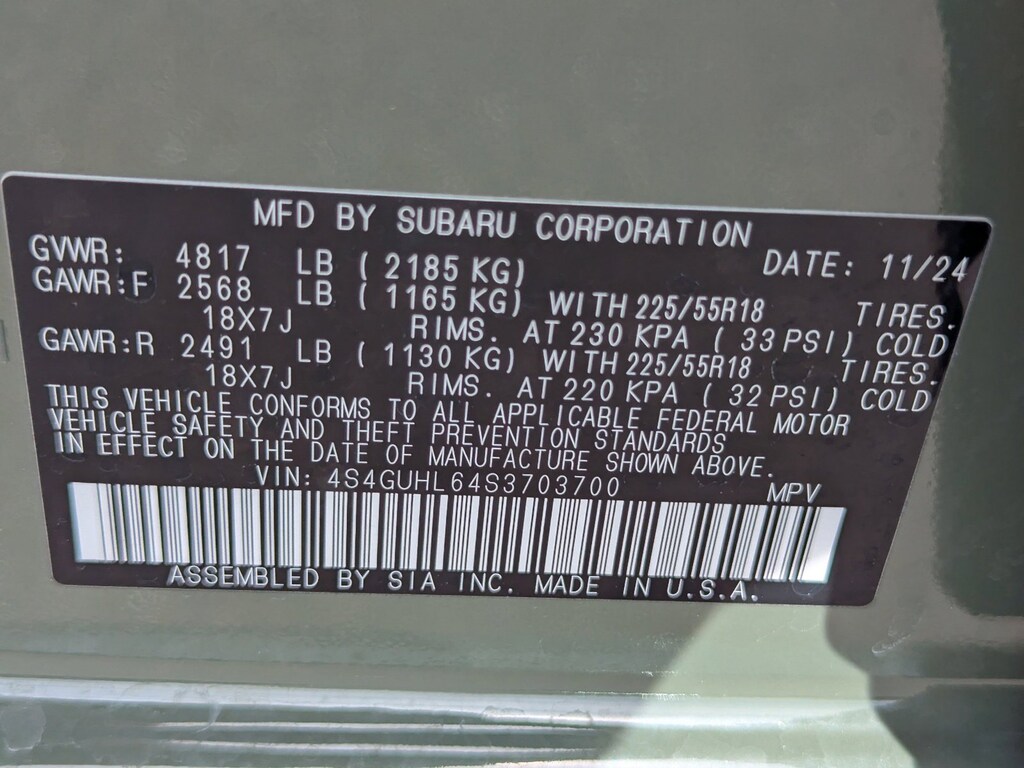 Trip Computer, Transmission: Lineartronic CVT -inc: straight-type shift lever w/shift position indicator, steering wheel paddle shift control switches, 8-speed manual shift mode, lock-up torque converter, X-MODE/dual-mode system snow/dirt, deep snow/mud and Hill Descent Control (HDC), X-MODE display screen controlled and incline start assist, Transmission w/Driver Selectable Mode and Sequential Shift Control w/Steering Wheel Controls, Tires: 225/55R18 98V All-Season, Tire Specific Low Tire Pressure Warning, Tailgate/Rear Door Lock Included w/Power Door Locks, Strut Front Suspension w/Coil Springs, Steel Spare Wheel, STARLINK Safety and Security (Subscription Required) Tracker System, STARLINK Safety and Security (Subscription Required) Emergency Sos.